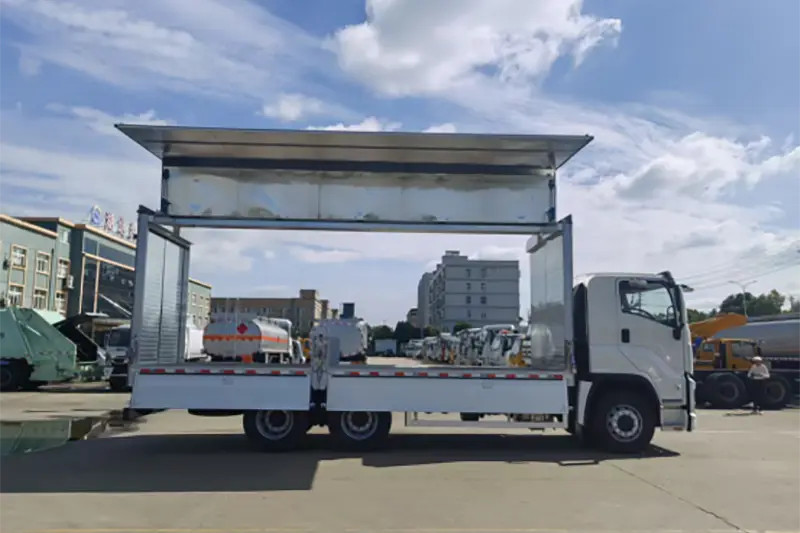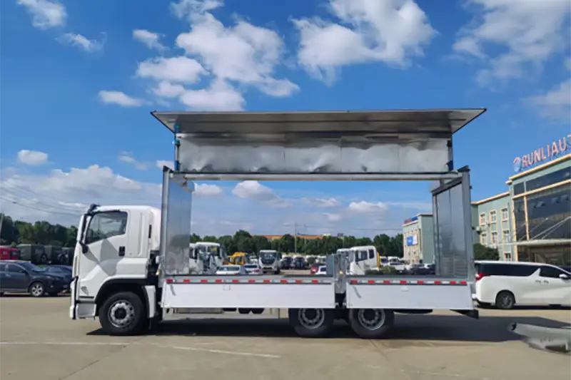 Runli アルミニウム合金ウィングスパン トラックは、ウィングオープン バンまたはサイド展開ボックス トラックとしても広く知られており、いすゞ 6X4 の純正シャーシを改造した高性能特殊トラックで、大型、重量、特大貨物の積み降ろし効率の低さの問題点を解決するためにアップグレードされました。従来の後部のみ開閉するボックストラックとは異なり、荷箱のサイドパネルとハーフルーフが油圧で翼のように展開し、横、前、後からの多方向のハンドリングをサポートする広々とした立体的な積載エリアを作り出します。これは、国際的なバルク貨物の流通、産業機器の配送、農産物の輸送で広く使用されている中核的な物流輸送ツールであり、国際的な卸売バイヤーや専用の物流企業向けに貨物の保護と取り扱い効率のバランスを完璧にとります。