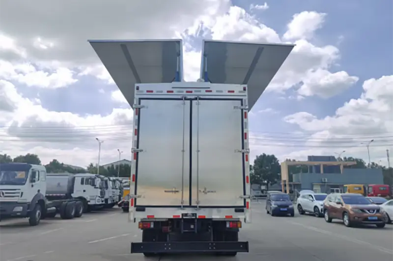 超高ハンドリング効率: 油圧ワンキー展開システム、ウィングパネルは 1 分以内に開閉し、幅広い操作チャネルを形成し、フォークリフトが複数の側面から同時に作業できるようにし、従来のボックストラックと比較して積み下ろし時間を 60% 短縮し、特に頻繁な荷物の移動や大型商品に適しています。
