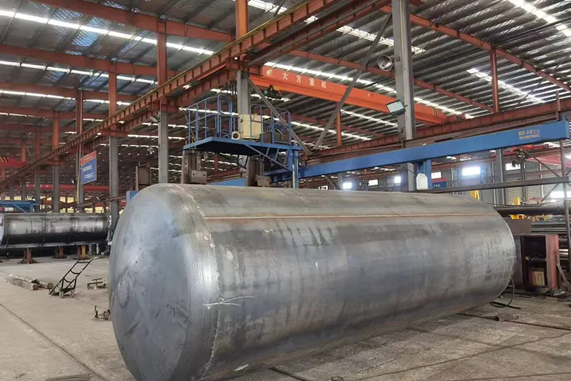 円筒シェル+楕円ヘッド(一体プレスで耐圧性を向上)